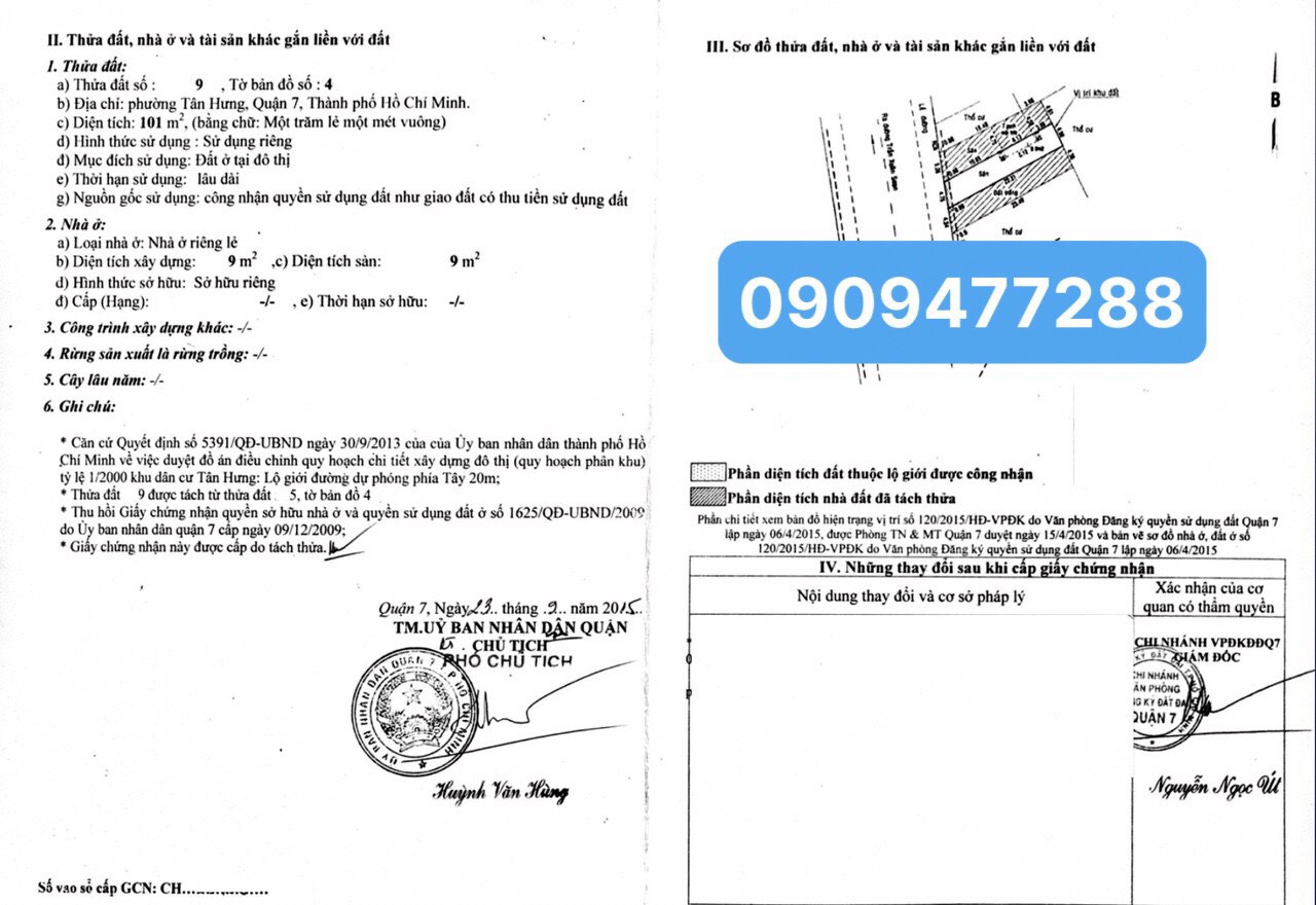 Bán lô đất hẻm 793 Trần Xuân Soạn, Khu Kiều Đàm Quận 7 dt 4x13m giá 5,3 tỷ lh 0909477288